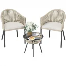- Simple assembly & Stylish design: This furniture set is easy to assemble and made of hand-woven rope which Add a primitive and natural style to your backyard. The patio furniture set is simple and stylish, it will be a beautiful view in your leisure places. The tabletop in the bistro set is made of high-quality tempered glass, perfect for placing drinks, food and any beautiful decorations.